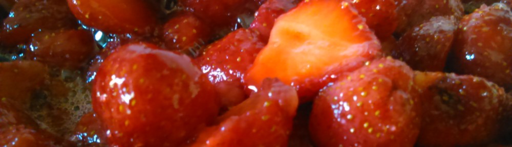 Pentru că i-a mâncat în fundul ceaunului să nu muncească (de prea multă TIFF-uială și lipsă de concentrare), s-au gândit să se relaxeze la o dulceață mică. Și pentru că-s fraieri și uită de la mână până la gură că ar fi fost mai bine să lase câteva ore căpșunele la rece cu zahăr și lămâie, ca să lase zeamă (din care puteau face sirop), și să ardă gazul mai puțin de trei către patru ore, își merită soarta. În timpul ăsta au mai făcut și o supă de bază, și șnițele cu rețetă aproape secretă, în aluat de bere (vai ce minunăție, n-au mai apucat dimineața, să le fotografiez).