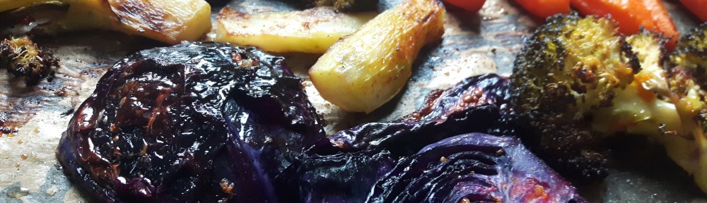 Ce face omul când cheamă la prânz vegetarieni? Caută, se inspiră, se uită prin frigider și cămară și ceva tot găsește. Cum ar zice prietena pesci-vegetariană, costițe de somon și ceafă de păstrăv n-ai? N-am, de fapt. Dar aveam broccoli, varză roșie și morcovi. Pe care le-am fățuit cu uleisare, chimion și poprică afumată. Le-am dat la cuptor la 170 de grade, iar când au fost gata, le-am refățuit sub grill-ul cuptorului cu zeamă și coajă rasă de clementină amestecate cu două picături de miere. Vegetariană fericită, omnivori fericiți, că au căpătat și fleică coaptă cu sare și chimion și păcălită cu o glazură de silvoiz și oțet balsamic la sfârșit, pe lângă vegetarianiadă. Și mai și arată bine de tot în poze. 🙂