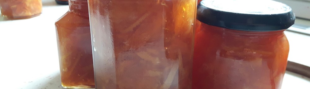 Cu mici variațiuni de pe la britanici. Spre deosebire de versiunea anterioară, de data asta au fiert coaja portocalie tăiată fâșii în sirop de zahăr (300 ml apă, 250 g zahăr), și, când s-a legat siropul, au turnat restul portocalelor roșii portocalii (2kg) curățate de coaja albă și tăiate în jumătăți de felii (adică tăiate pe la mijlocelul dolofan și desfăcute în felii) și restul de zahăr (1,5 kg).