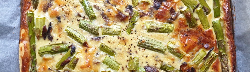 Așadar, pentru o tartă cu sparanghel semi-improvizată, se iau următoarele: o prietenă din alt oraș, o rețetă găsită și testată de ea (pe care v-o arată aici, în engleză, și e mai Brâncuși, nu Pollock ca a mea), se completează cu o șuetă și se purcede la adaptare pe bază de ce-aveam prin frigider: